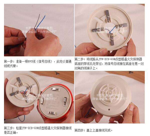 1.JTW-ZCD-G3N點(diǎn)型感溫火災(zāi)探測(cè)器與控制器采用無極性二總線連接;