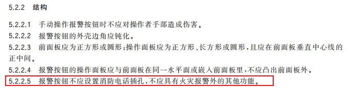 再來看手報(bào)(或稱“報(bào)警按鈕”)不允許設(shè)置電話插孔的相關(guān)規(guī)定,目前只有將在2025年12月1日正式實(shí)施產(chǎn)品標(biāo)準(zhǔn)GB 19880-2024《手動(dòng)火災(zāi)報(bào)警按鈕》。