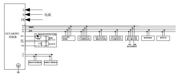 氣體滅火控制器(簡稱為GST-QKP01)是海灣公司為適應工程設計的需要而開發(fā)的。GST-QKP01為典型的